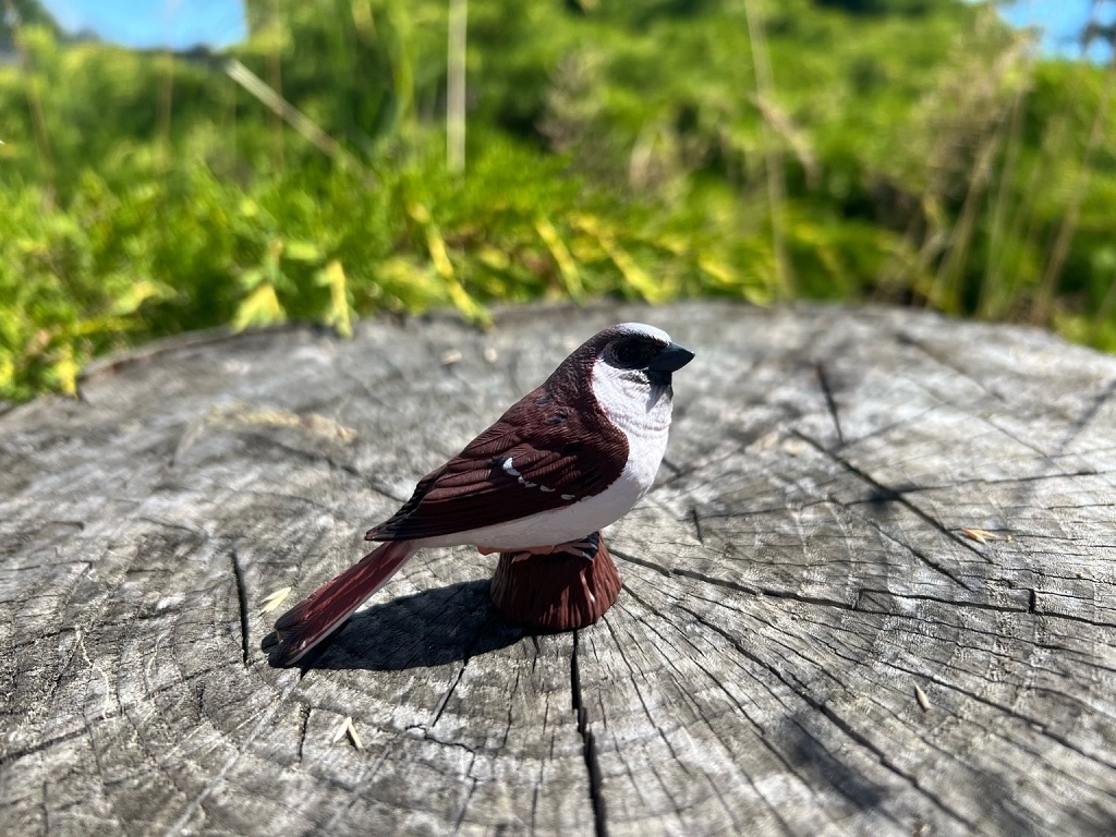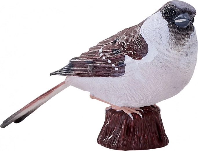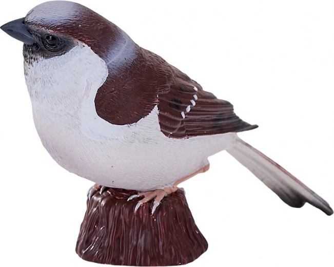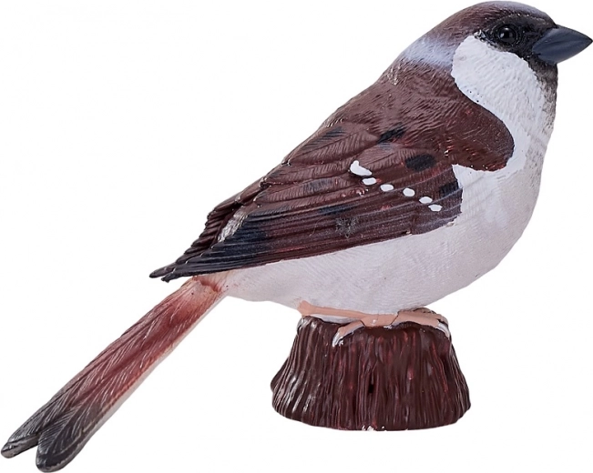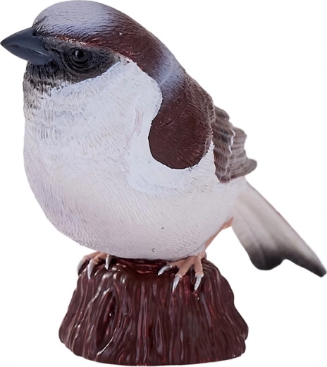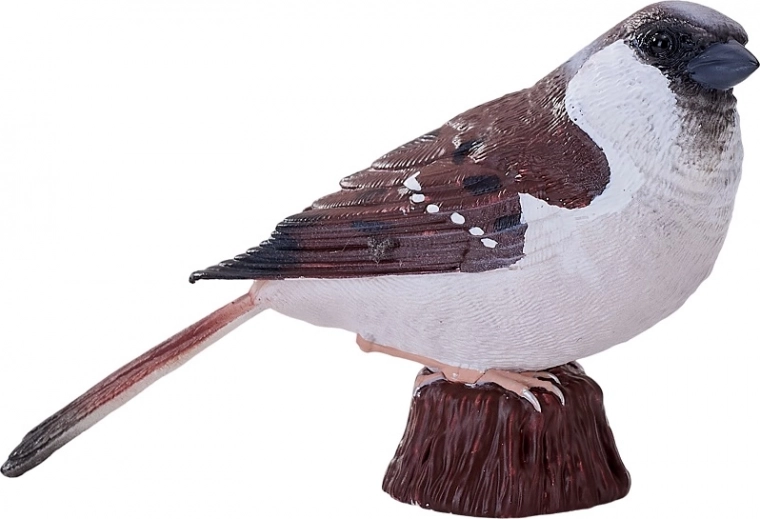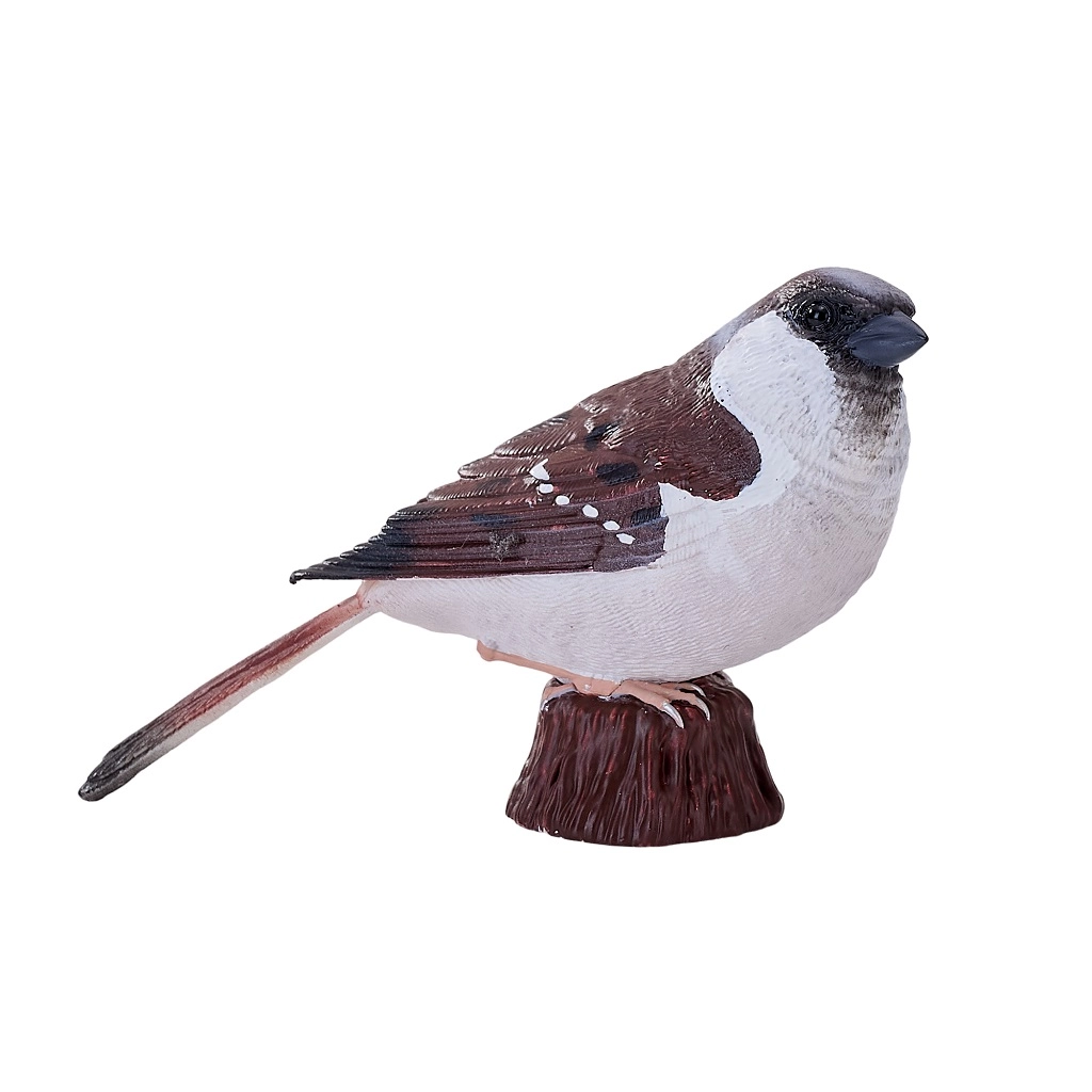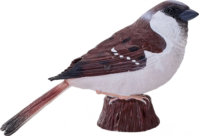 Modelarea atentă și pictura manuală evidențiază trăsăturile realiste ale vrabiei – de la textura penajului până la coloritul autentic.
