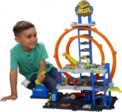 Garajul maxi Hot Wheels City aduce joc dinamic pe trei niveluri – de la spălătorie la parter, trecând prin liftul manual, până la startul de la ultimul etaj. Lansatorul trimite mașinile în bucla dublă, iar comutatoarele stabilesc la ce etaj va ajunge vehiculul. Grozav pentru joc individual sau în grup.