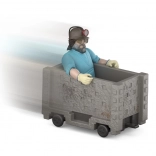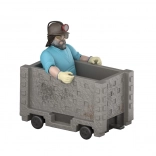 Vagonetul detaliat, cu roți, permite deplasări pe șine imaginare și îmbogățește orice aventură.