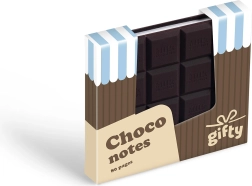 Descoperiți Gifty carnețelul original inspirat de ciocolată, care impresionează nu doar prin designul său cu un colț mușcat, ci și prin caracteristicile sale practice ca un bloc-notes stilat cu foi albe curate.