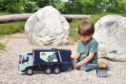 Descoperă jocul realist de-a gunoierii cu camionul de gunoi VOLVO de la Lena Worxx. Datorită execuției de calitate, axelor metalice solide ale roților și elementelor funcționale bine gândite, camionul face față și unui mod de utilizare mai intens în grădină sau în camera copilului.