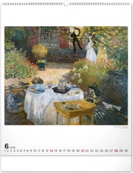 Dacă admirați operele lui Claude Monet, acest calendar de perete este perfect pentru dumneavoastră. Fiecare lună aduce un nou tablou din galeria sa bogată, plină de peisaje vii și personaje.