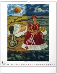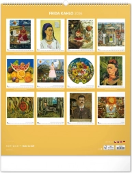 Descoperiți farmecul artei lui Frida Kahlo cu acest calendar de perete de mari dimensiuni pentru anul 2026. Conține doisprezece picturi iconice ale pictoriței mexicane, simboluri ale curajului și artei unice.