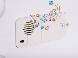 Muzică veselă, activată prin apăsarea unui buton de pe partea inferioară a tramvaiului, este un alt element de distracție pentru micii șoferi!