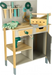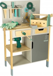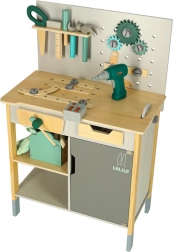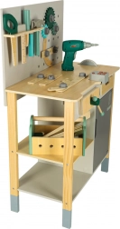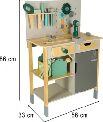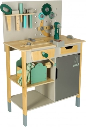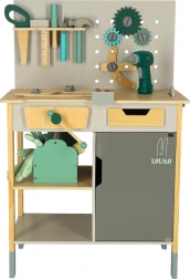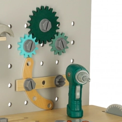 Valoare educațională: Potrivit pentru uz casnic sau mediu școlar, unde selecția largă de unelte permite scenarii de joc infinite. Include, printre altele, masă, fierăstrău, șurubelniță, ciocan și multe altele, inclusiv telecomandă cu efecte sonore.