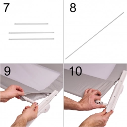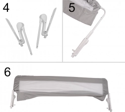 Protecția practică previne căderile accidentale, asigurând în același timp confort și siguranță pentru toți membrii casei. Montajul este foarte simplu - trebuie doar să asamblezi cadrul, să-l introduci în țesătura textilă cu plasă și să plasezi suporturile sub saltea.