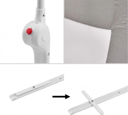 Când bariera nu este necesară, o poți pliat rapid cu ajutorul butoanelor laterale, astfel încât să nu depășească nivelul saltelei. Structura solidă combină metalul durabil cu plasticul de înaltă calitate, oferind stabilitate în fiecare noapte și rezistență chiar și la o sarcină mai mare. Somn liniștit fără griji - pentru tine și copilul tău!