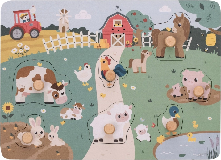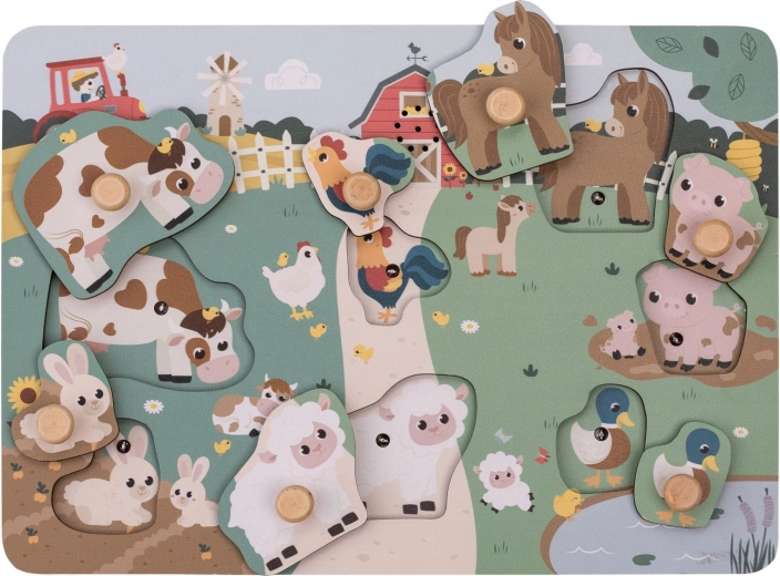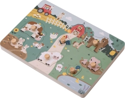 Puzzle sonor din lemn cu tema animalelor de la fermă, care emit