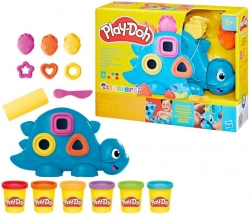 Setul include 11 unelte mari, robuste și activități senzoriale create special pentru copiii de la 2 ani. Dinozaurul permite crearea de păr amuzant din plastilină. Setul conține 6 cutii de plastilină Play-Doh, fiecare cu o greutate de 58 g, în total 340 g de plastilină. Dimensiunile ambalajului sunt 21,6 x 27,9 x 7,9 cm.