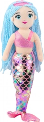 Această fermecătoare sirenă de pluş atrage nu doar prin dimensiunea sa, ci mai ales prin aspectul estetic și magic. Coada este confecționată dintr-un material ce imită solzii sclipitori cu efect holografic. Părul lung, albastru este sub formă de cosițe din sfoară, ceea ce creează o siluetă uimitoare ca dintr-un regat subacvatic.