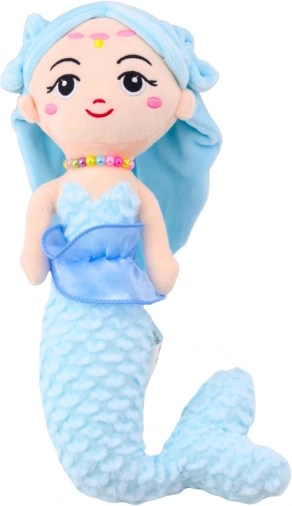 Sirena de mare de pluș de dimensiune 32 cm încântă prin aspectul său delicat, pastel și realizarea atentă. Coada sa moale cu textură cu solzi nu doar că arată frumos, dar stimulează și simțul tactil.
