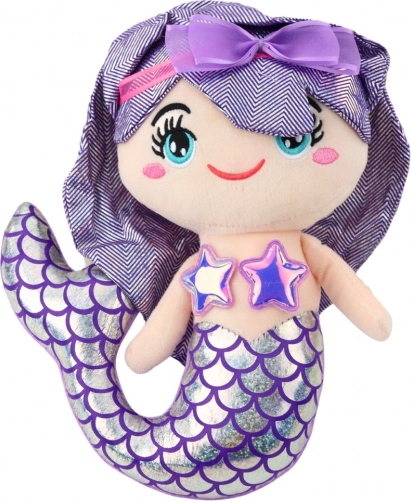Această sirenă de mare din pluș de 25 cm impresionează prin designul său minunat și atingerea sa delicată. Jucăria este decorată cu două ochi brodați, un chip zâmbitor și două steluțe decorative pe corp. Părul său ondulat și suav atrage atenția copiilor.