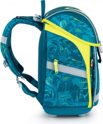 Rucsacul este echipat cu bretele late și moi, care distribuie uniform greutatea pe umeri și asigură confortul chiar și la transportul pe perioade mai lungi. Designul include și bretele toracice atractive pentru o stabilitate mai mare. Nu lipsesc nici buzunarele funcționale și elementele reflectorizante care îmbunătățesc siguranța copilului pe drumul spre școală.