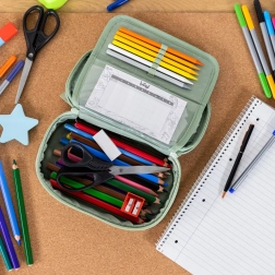 Penarul școlar Etue Mentol este spațios, cu un clapet dublu și buzunar interior. Materialul este solid, reciclat, iar fermoarele YKK oferă o rezistență excelentă. Săculețul pentru încălțăminte este realizat dintr-un material solid lavabil, cu un sistem de strângere cu șnururi rezistente pentru purtare confortabilă pe spate.