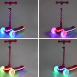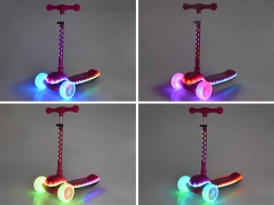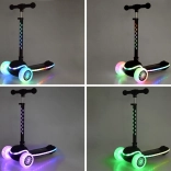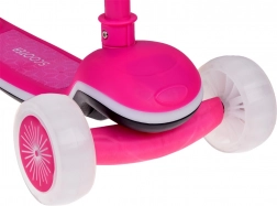 Trotineta de echilibru pentru copii SCOOTER, distractivă și sigură, oferă trei roți pentru stabilitate, direcție lean-to-steer, efecte luminoase și modul muzical. Datorită platformei late antiderapante și ghidonului cu înălțime reglabilă, crește odată cu copilul și sprijină învățarea naturală a echilibrului.
