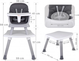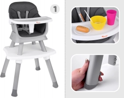 Scaunul multifuncțional pentru masă 6-în-1 este soluția ideală pentru părinții care caută echipamente practice și elegante, care se adaptează nevoilor în schimbare ale copilului. De la un scaun pentru mese individuale până la o întreagă configurare de masă pentru joacă și învățare.