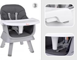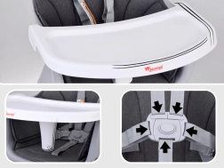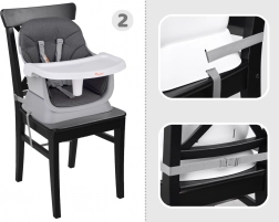 - Adaos pentru masă – datorită curelelor de fixare și picioarelor antiderapante, se fixează în siguranță pe orice scaun.