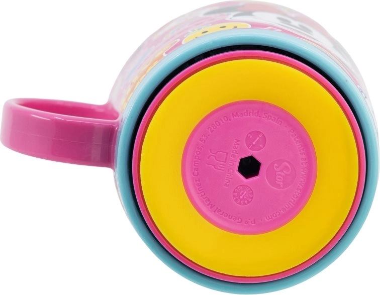 Bucurați-vă de băutura preferată cu o cană sigură și stilată cu motiv Minnie Mouse. Oferă un inovativ sistem Smartgrip, care previne răsturnările accidentale.
