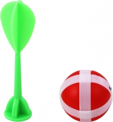 Setul include o țintă întunecată cu un diametru de 28 cm, o săgeată și o minge, ambele cu capăt pentru arici. Ținta are o numerotare clară și zone colorate care nu doar facilitează învățarea și îmbunătățesc reflexele, dar sunt utile și pentru jocul în interior sau exterior.