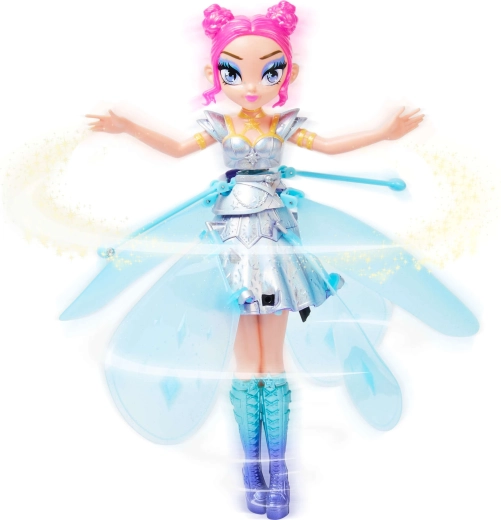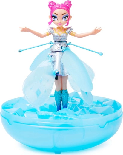Zâna zburătoare Hatchimals Pixies este adăpostită într-o casetă-cristal sclipitoare, care servește drept bază elegantă și capac de depozitare. După pornire, zâna se ridică cu ajutorul aripilor rotative și reacționează sensibil la poziția mâinilor – când le ții mai jos, coboară, când sunt mai sus, urcă. Printr-o simplă atingere a aripilor, închei zborul în siguranță.