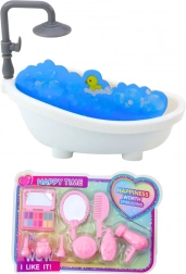 Elementul principal al setului este o cadă spațioasă, albă, cu spumă realistă și o rață de cauciuc. La aceasta sunt adăugate accesorii cosmetice precum perie, oglindă, uscător de păr și alte articole necesare, care ajută la extinderea jocului cu ritualurile zilnice de igienă și relaxare.