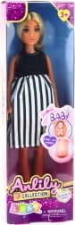 Păpușa Anlily Gravidă este o alegere excelentă pentru a juca scene realiste de familie. Îmbrăcată într-o rochie elegantă cu dungi alb-negre și cu burtica vizibilă, este ideală pentru dezvoltarea imaginației și empatiei copiilor.