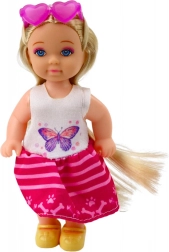 Acest set adorabil transportă copiii în lumea îngrijirii atente și a distracției jucăușe cu animalele de companie. Păpușa de 12 cm este îmbrăcată într-un outfit colorat: tricou alb cu imprimeu de fluturași, fustiță roz cu model de lăbuțe și pantofi galbeni. Păpușa poartă ochelari roz în formă de inimioară, care îi conferă un caracter distinct.
