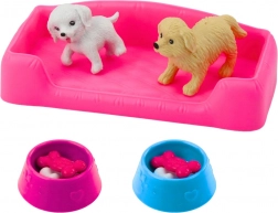 Setul include accesorii grozave inclusiv doi căței – unul alb și unul crem, un culcuș roz și două boluri cu hrană. Copiii pot îngriji animalele, le pot așeza în culcuș și învăța responsabilitatea și empatia.