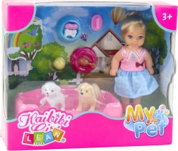 Încântați-vă copiii cu acest set drăgălaș, care aduce în joc experiențe de îngrijire a animalelor de companie. Păpușa de 12 cm înălțime este îmbrăcată într-o fustă elegantă în două tonuri, completată cu pantofi roșii și cu părul blond pieptănat într-un coc neted.