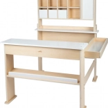 Standul de vânzare din lemn este un excelent adaos în lumea de joacă a copiilor, stimulând creativitatea și imaginația lor. Datorită construcției robuste și materialelor de calitate, nu este doar plăcut la vedere, ci și sigur și rezistent pentru joacă îndelungată. Standul este proiectat pentru a dezvolta abilitățile de comunicare și sociale ale copiilor și pentru a-i învăța regulile de bază ale interacțiunii sociale.