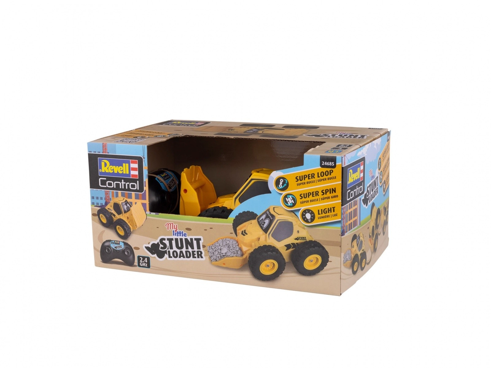 Descoperiți lumea incitantă a vehiculelor acrobatice cu RC camionul Încărcătorul Meu Mic Cascador! Această mașină robustă este ideală pentru micii cascadori de la 4 ani, care doresc să experimenteze diverse trucuri de 360°.