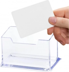 Suportul pentru cărți de vizită permite organizarea și prezentarea estetică a cărților de vizită, ceea ce crește confortul în deservirea clienților și partenerilor de afaceri. Dimensiunile sale compacte permit plasarea ușoară pe o masă sau tejghea, fără a ocupa spațiu inutil. Produsul se caracterizează prin durabilitate ridicată, rezistență la zgârieturi și ușurința în întreținere.
