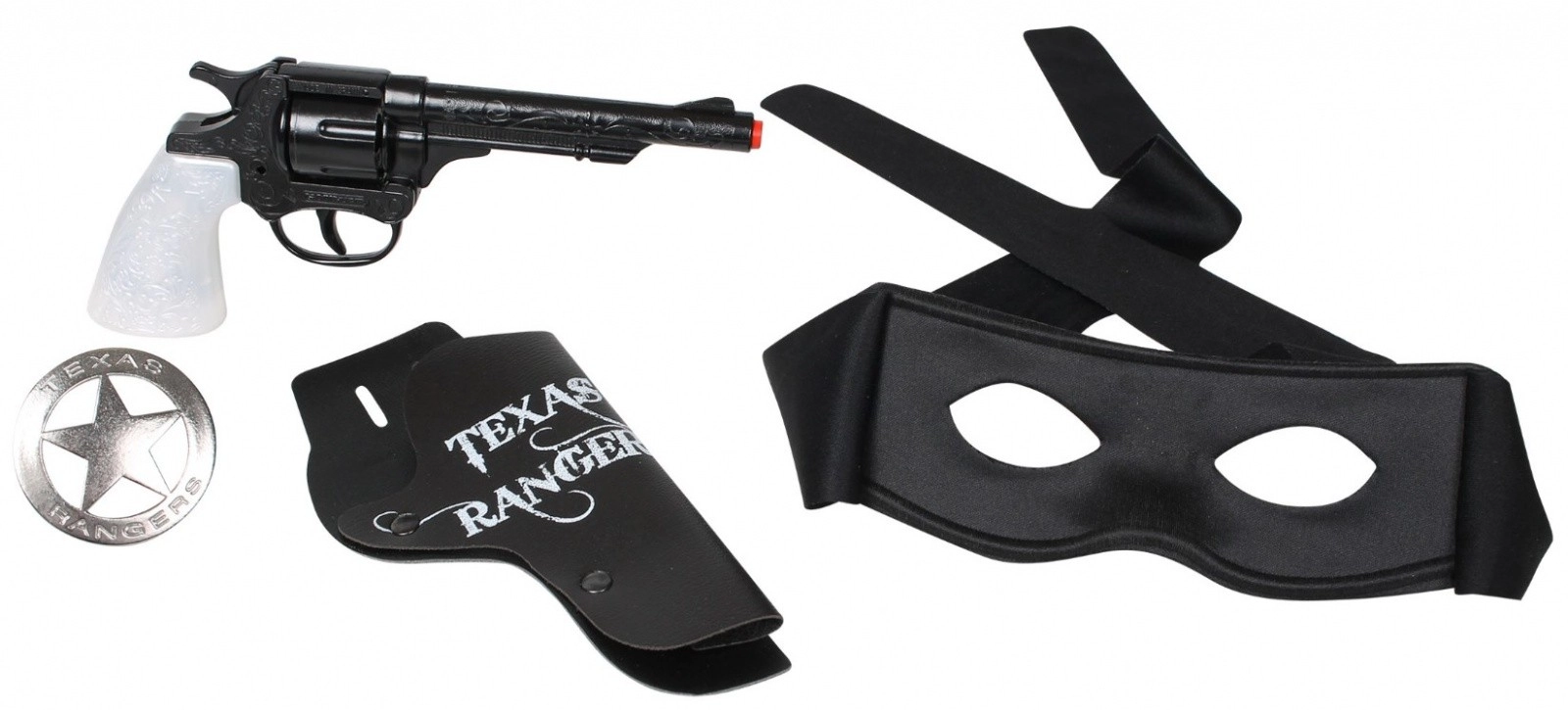 Intrați în lumea vestului sălbatic cu setul nostru cowboy, care include un revolver metalic cu 8 gloanțe, un toc, o mască de cowboy, un insignă și o curea. Ideal pentru copii de la 3 ani.