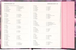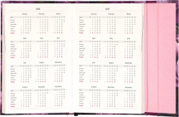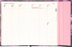 Include de asemenea prezentări generale lunare, care sunt ideale pentru planificarea vacanțelor sau concediilor. Agenda este nu doar practică, dar, datorită designului cu motiv de flori violete, și un accesoriu stilat pentru biroul dumneavoastră.