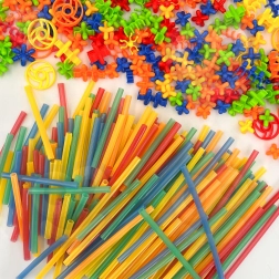 Tuburile și conectorii colorați, după expunerea la lumină, strălucesc în întuneric, astfel încât fiecare construcție prinde viață și îi motivează pe copii să creeze în continuare.