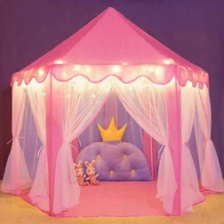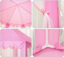 Căsuța Palatului Prințesei oferă un spațiu generos de joacă care poate găzdui jucăriile preferate, perne și chiar câțiva prieteni mici. Structura sa ușoară și intuitivă permite asamblare și demontare rapidă, facilitând depozitarea și transportul.
