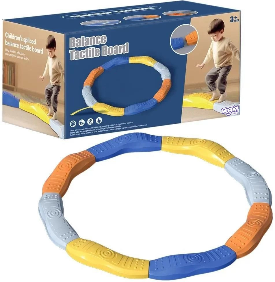 Aduceți copiilor mișcare și distracție cu pista modulară senzorială de echilibru în formă de cerc de la Woopie. Segmentele curbe interconectabile, cu suprafață antiderapantă, dezvoltă echilibrul, coordonarea și percepția senzorială a tălpilor. Din 8 piese creați cu ușurință un cerc, o undă sau forme proprii – ideală pentru exerciții acasă și joacă pe orice suprafață plană.