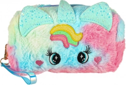 Design inspirat de unicorn cu model curcubeu și urechiușe, ideală pentru depozitarea produselor cosmetice.