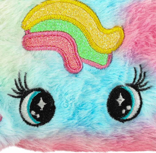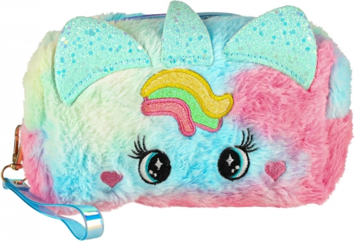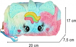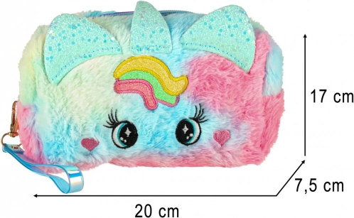 Geanta cosmetică este dotată cu un design adorabil cu model curcubeu și urechiușe unice, fiind un accesoriu estetic grozav pentru orice mică prințesă.