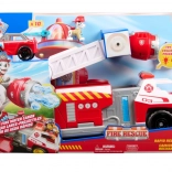 Panourile laterale se transformă într-un centru de acțiune: dezvăluie platformă, braț de salvare și lansator dublu. Mecanismul cu tambur rotativ permite tragere rapidă a proiectilelor cu apă și încărcarea lor automată (până la 5 buc.). Figurina Marshall poate porni de pe platforma din spate direct în mini vehiculul de salvare, care poate fi trimis imediat în misiune.