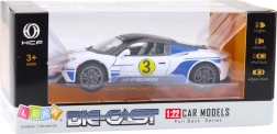 Această mașină sport din metal este proiectată cu atenție la detalii, făcându-o o jucărie excelentă și o piesă de colecție. Anvelopele din cauciuc oferă o aderență bună și aspectul real al unei mașini de curse.