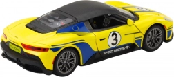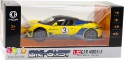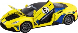 Această frumoasă mașină sport este echipată cu efecte luminoase și sonore, care se activează prin apăsarea ușoară a capotei, oferind o experiență realistă de curse auto. Datorită mecanismului fricțional, mașina pornește ușor în mișcare, fiind suficient să fie împinsă înainte.