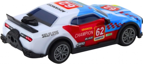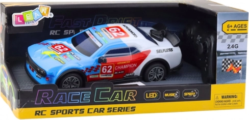 Mașină de curse telecomandată cu LED-uri și aburi de apă, albastru 1:22