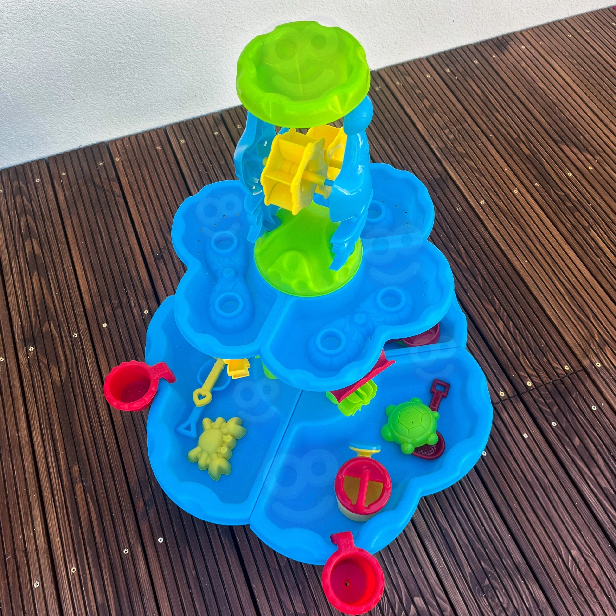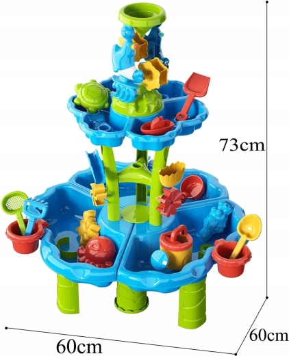 Datorită asamblării ușoare, o veți monta în câteva clipe. Marginile netede și picioarele stabile asigură joacă în siguranță, iar lopățelele, formele, stropitoarea, găletușele și bărcuța incluse susțin creativitatea și percepția senzorială. Grozavă pentru joacă individuală sau distracție împreună cu frații ori prietenii.