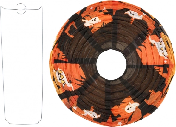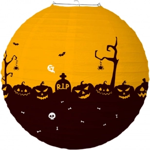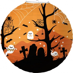 Adaugă decorului tău de Halloween atmosfera potrivită cu un lampion rotund din hârtie, cu diametrul de 30 cm. Datorită construcției ușoare, montării simple și motivelor înfricoșătoare precum dovleci, fantome, lilieci și cimitire, creează în câteva clipe un iluminat ambiental impresionant pentru petreceri sau la fereastră.