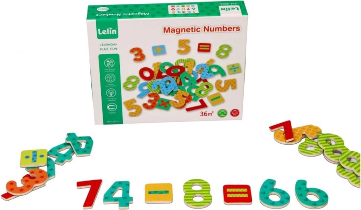 Numere magnetice distractive și educative din lemn pentru copii de la 3 ani în sus. Suprafața întreagă a numerelor este acoperită cu magnet, ceea ce permite atașarea ușoară pe orice suprafață magnetică.