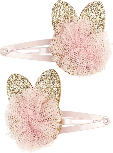 Aceste frumoase agrafe de păr sunt destinate micilor cochete de la 3 ani în sus. Setul conține două agrafe metalice cu luciu roz, decorate cu o aplicație aurie în formă de pisicuță și completate cu un pompon de tul roz. Acest detaliu delicat va încânta cu siguranță fiecare mică romantică. Datorită mecanismului de prindere, agrafele stau fiabil în păr toată ziua. Ideal pentru purtarea zilnică și ocazii speciale.