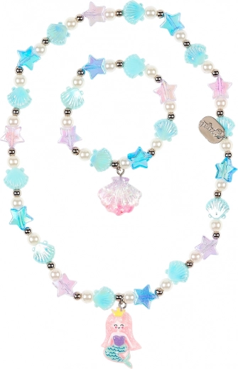 Descoperiți setul magic de bijuterii pentru micile elegante, care conține un colier cu pandantiv sirenă și o brățară elastică asortată. Datorită nuanțelor delicate de roz și albastru deschis, setul va fi un accesoriu indispensabil pentru orice petrecere!