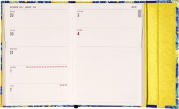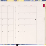 Această agendă stilată oferă un aranjament orizontal al săptămânii pe două pagini, permițând o planificare ușoară și spațiu pentru note. Sunt incluse de asemenea prezentări lunare practice, ideale pentru planificarea vacanțelor sau zilelor libere. Dimensiunea sa compactă de 11 x 16 cm este ideală pentru a fi purtată zilnic.