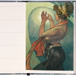 O agendă săptămânală practică cu închidere magnetică în stilul lui Alfons Mucha este un ajutor ideal pentru cei care doresc să păstreze planurile lor clare și organizate.
